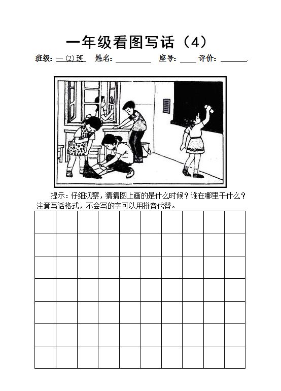 放学了,有四个同学在教室里打扫卫生,有的在洒水、有的在擦黑板、有的在擦桌子、有的在扫地,不一会儿他们给教室打扫的干干净净。
