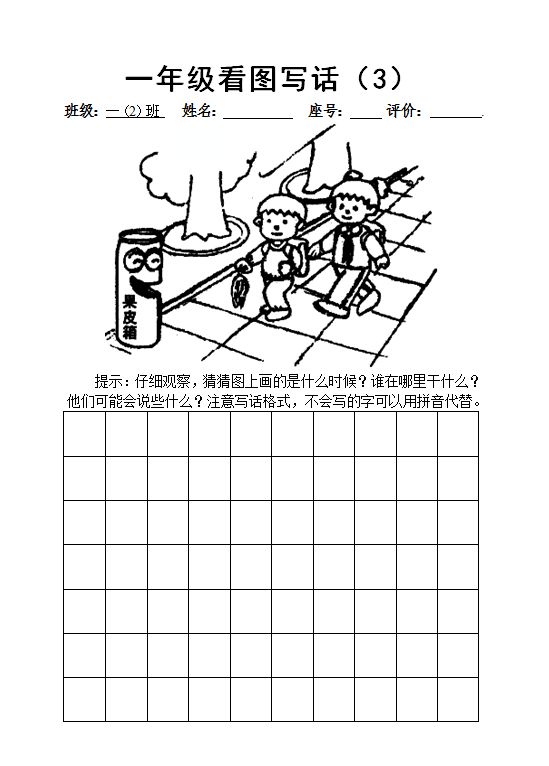 阳光灿烂的早上,小明带着他心爱的足球,吃着香蕉快乐地走在马路上。香蕉吃完了,就把香蕉皮扔在垃圾桶旁边。就在这时,他看见环卫爷爷满头大汗地在打扫地板,小明觉得很不好意思。想起自己扔的香蕉皮,不能让环卫爷爷这么辛苦,小明就回头把香蕉皮捡起来,扔进垃圾桶里。环卫爷爷夸他是个好孩子,小明高兴极了。