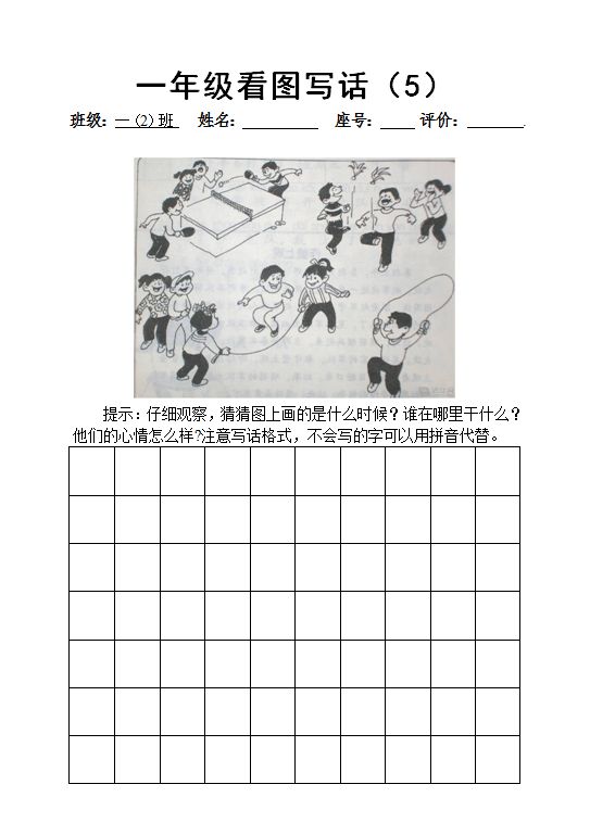 “铃铃铃……,”下课铃响了,同学们像放飞的小鸟一样,飞跑到操场上。他们三个一群五个一伙在操场上做游戏。有的在玩老鹰抓小鸡,有的在玩踢毽子,有的在玩跳绳……